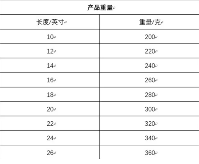 Size:14inch-240g /16inch-260g /18inch-280g /20inch-300g /22inch-320g /24inch-340g / 26inch-360g/pc
